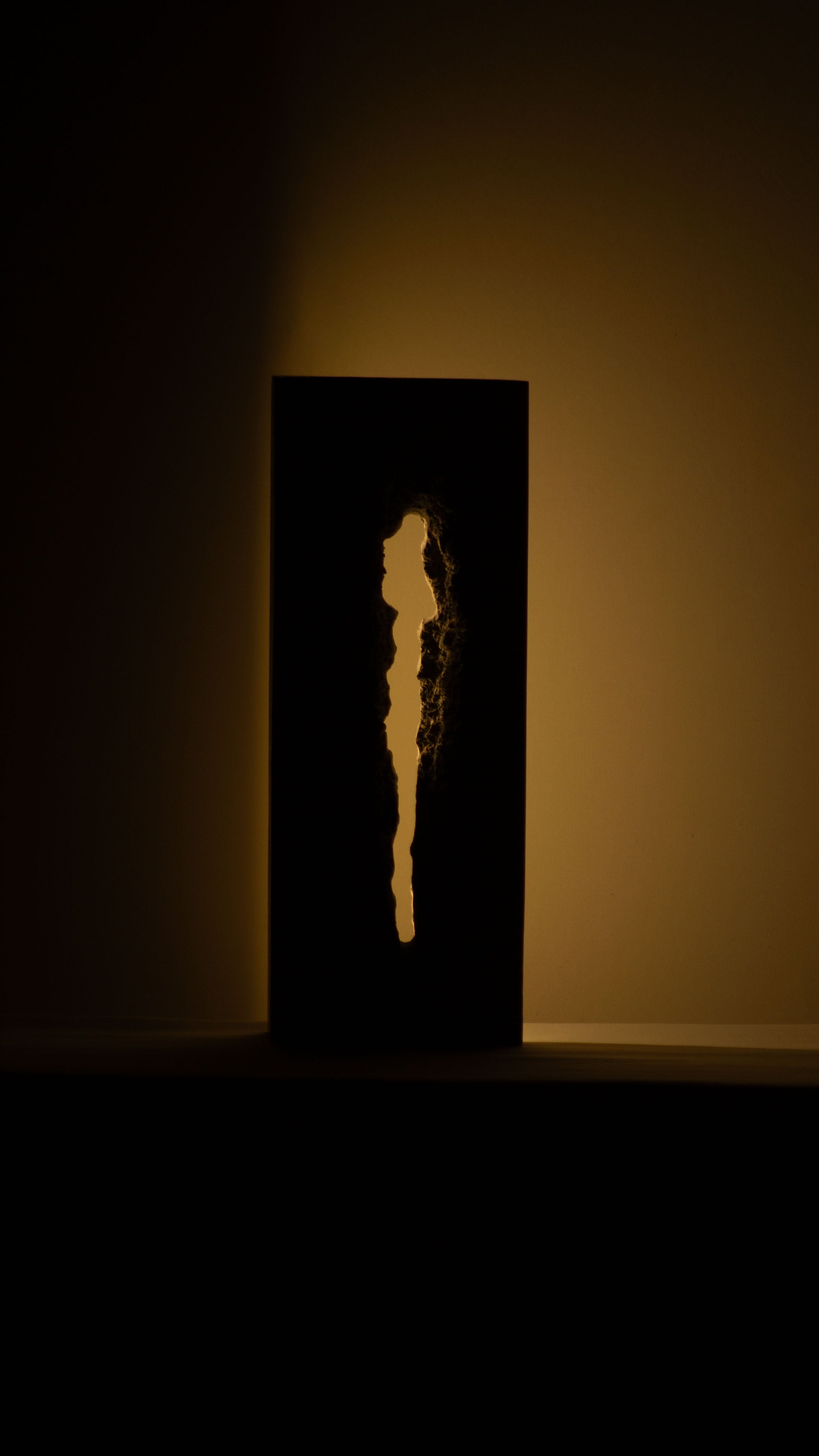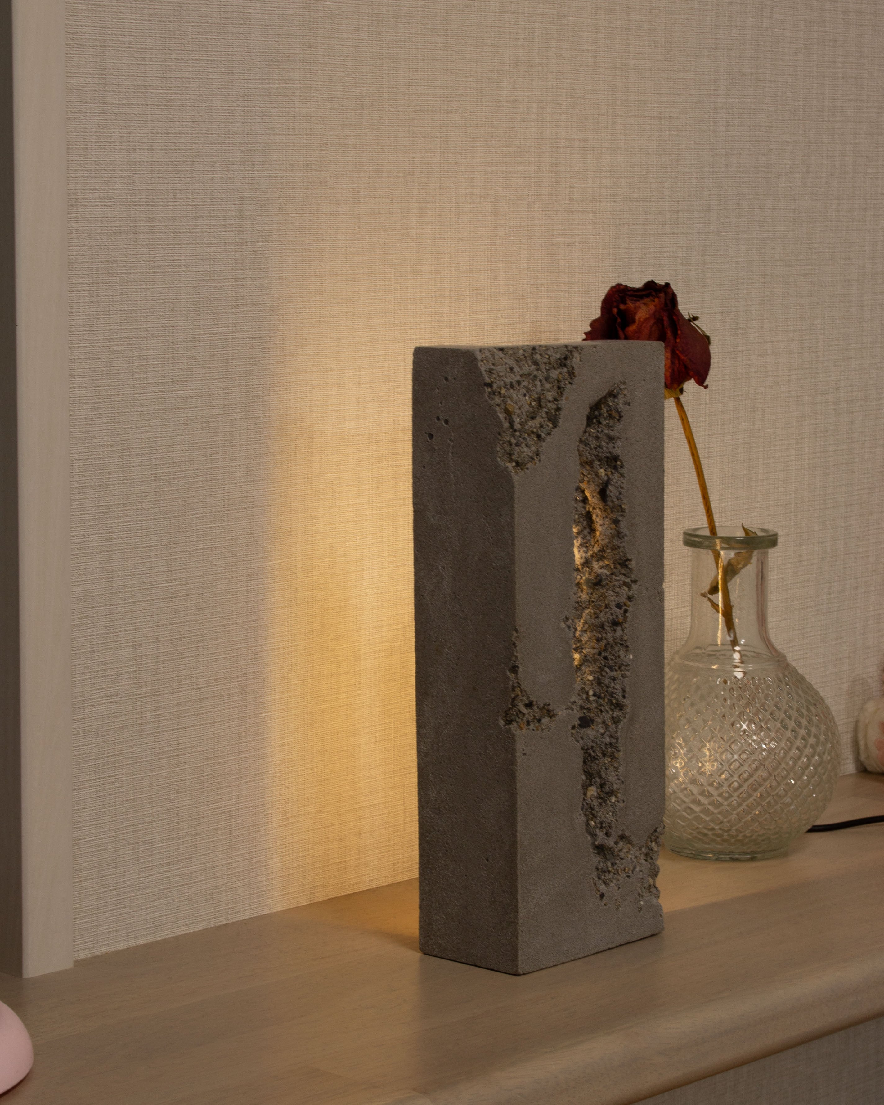 Lineのコンセプトである神殿。その『裂け目』をイメージし、コンクリートで製作したデスクライトになります。