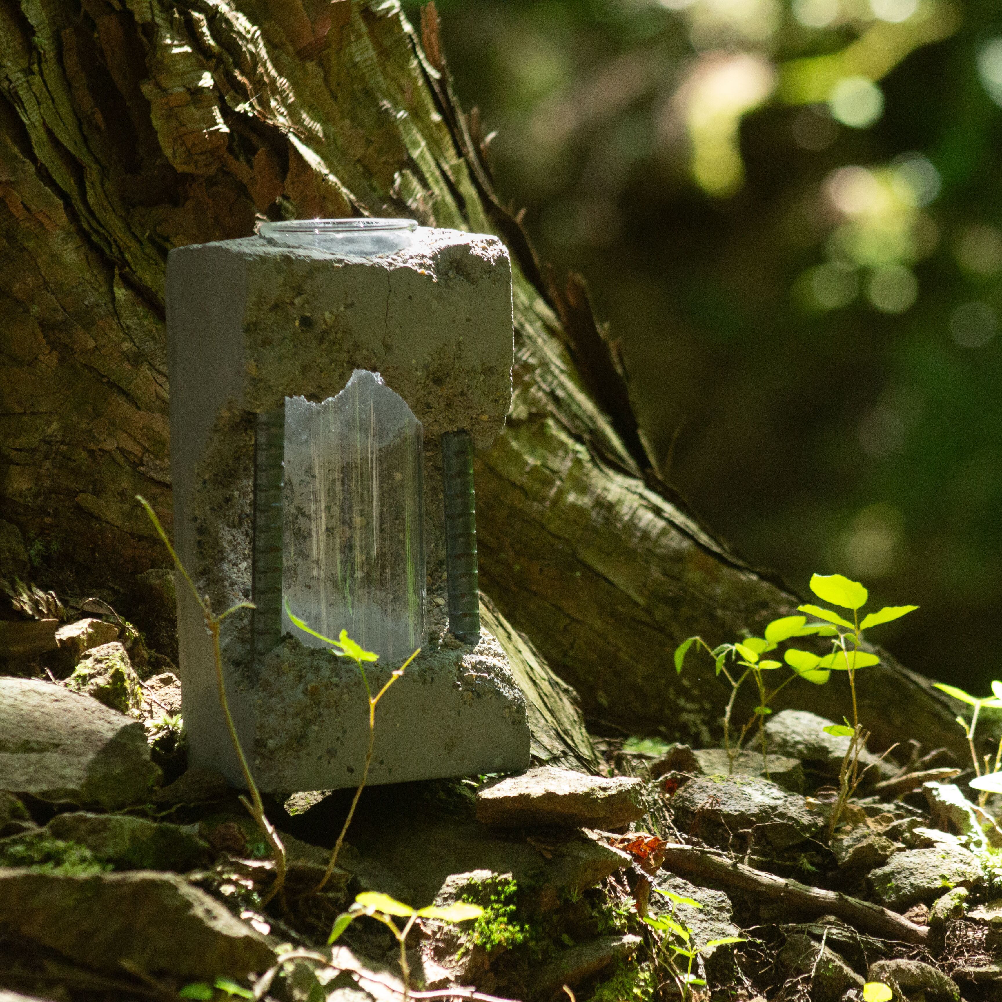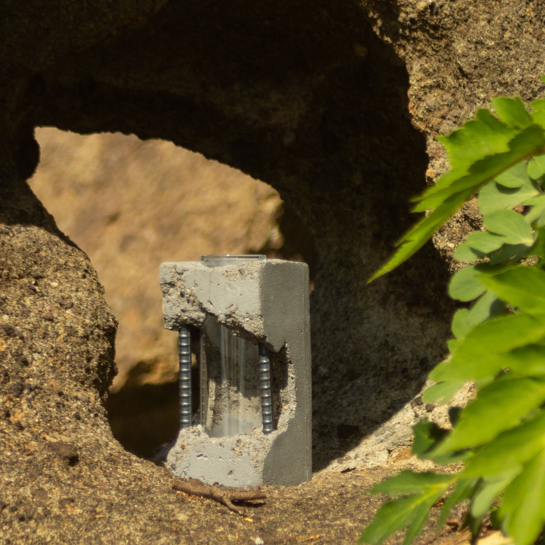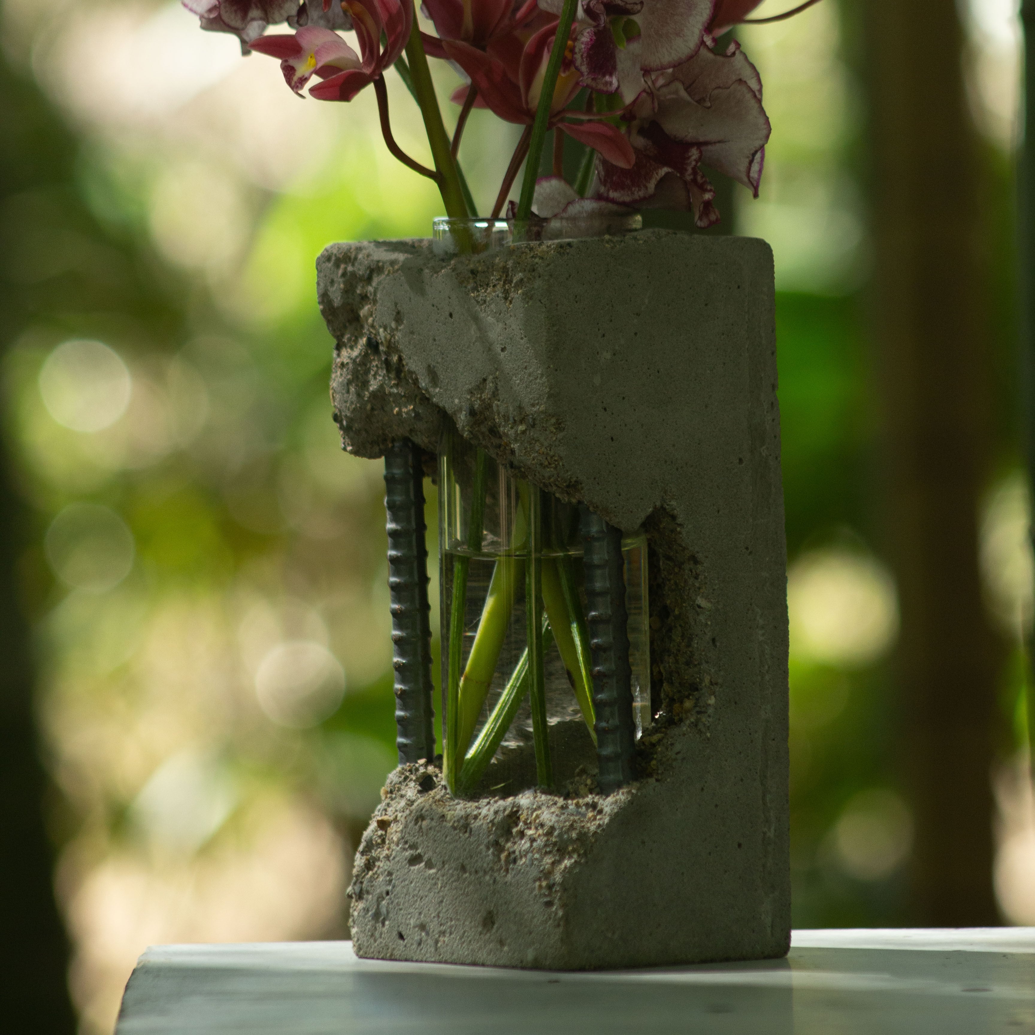 コンクリートの無機質さ、鉄筋による退廃感、そして対比になる生き生き輝く花。